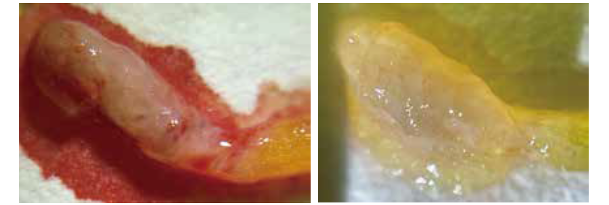 正常乳腺组织VABB样本的外观表现:透明,表面光滑有光泽
