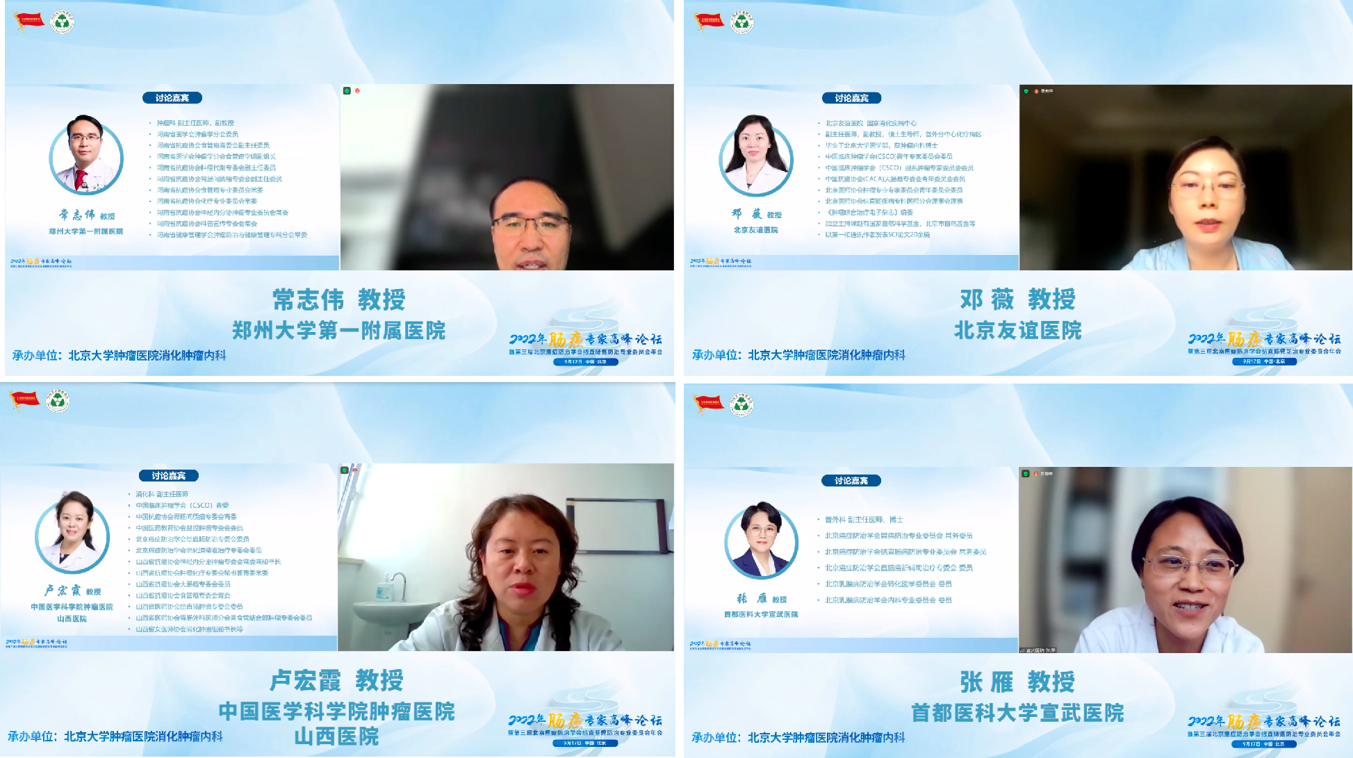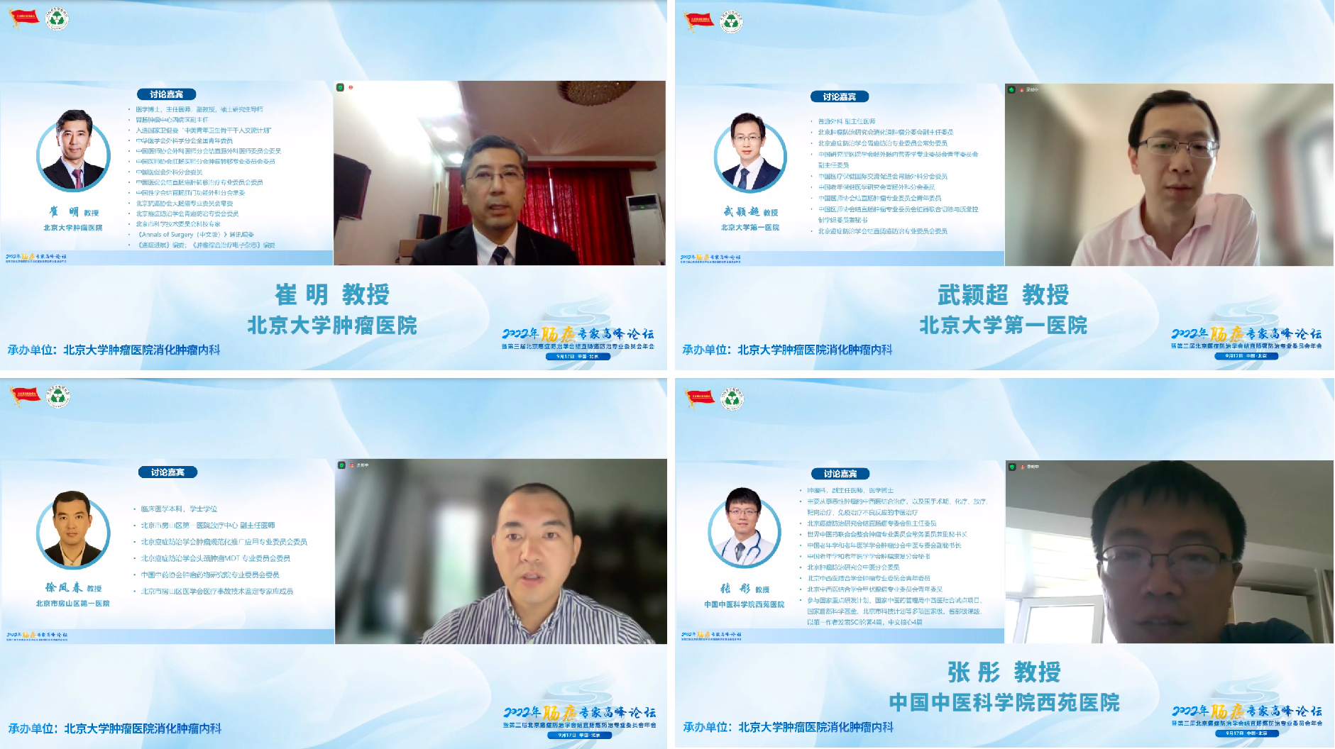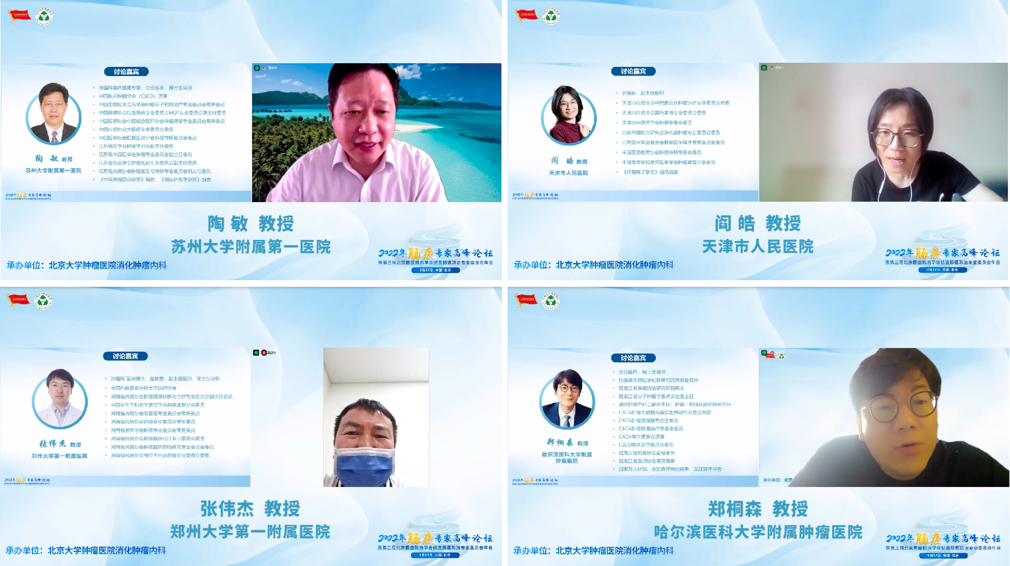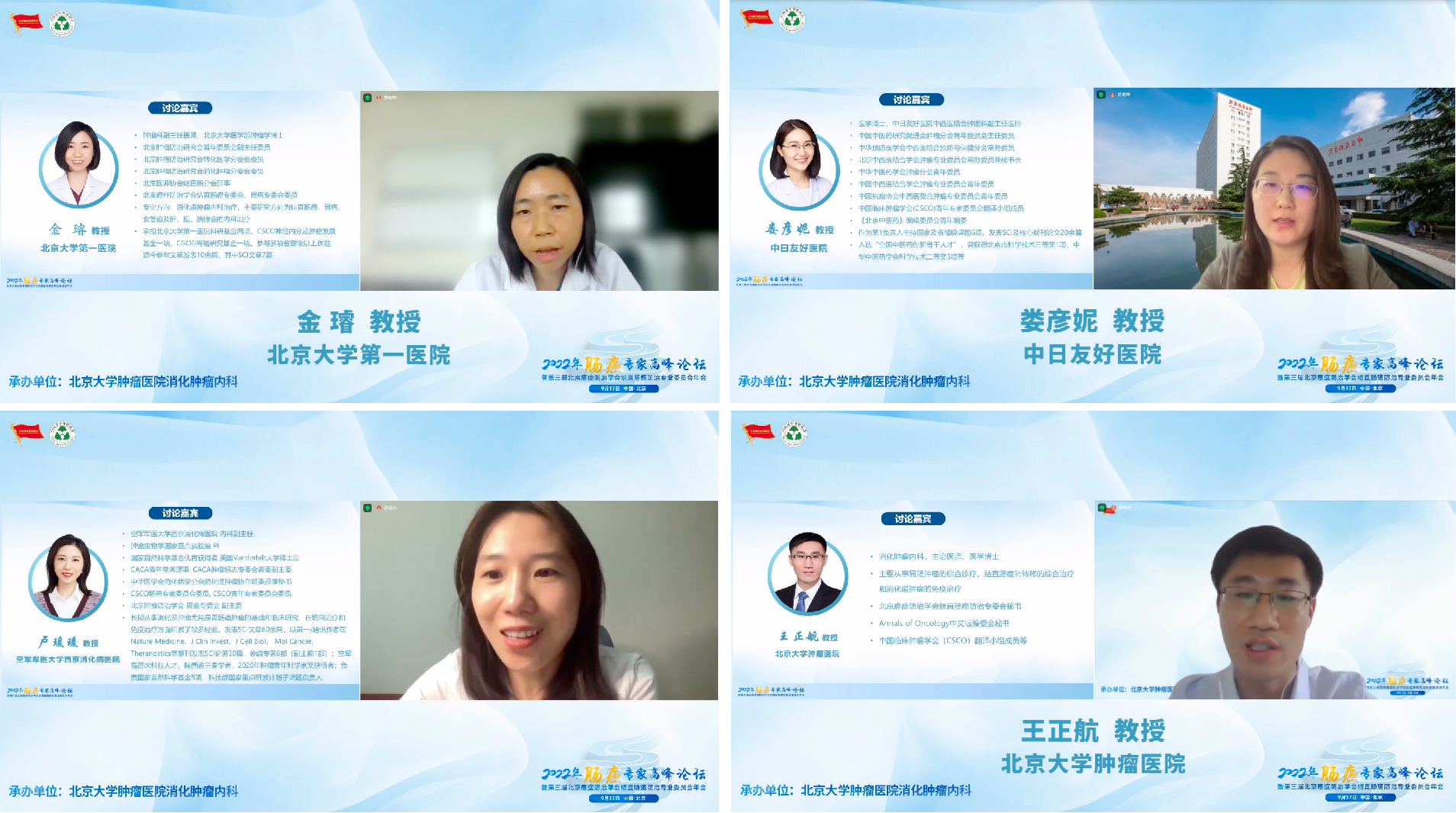北京大学肿瘤医院王晰程教授主持开展讨论环节,北京大学第一医院金璿教授、中日友好医院娄彦妮教授、空军军医大学西京消化病医院卢瑗瑗教授和北京大学肿瘤医院王正航教授担任讨论嘉宾,围绕Takayuki Yoshino教授的分享展开精彩讨论。