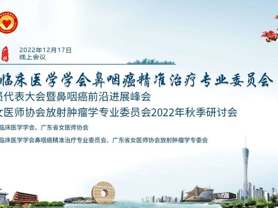 会议报道】广东省临床医学学会鼻咽癌精准治疗专业委员会第三次委员代表大会暨鼻咽癌前沿进展峰会暨广东省女医师协会放射肿瘤学专业委员会2022年秋季研讨会在线上成功举办